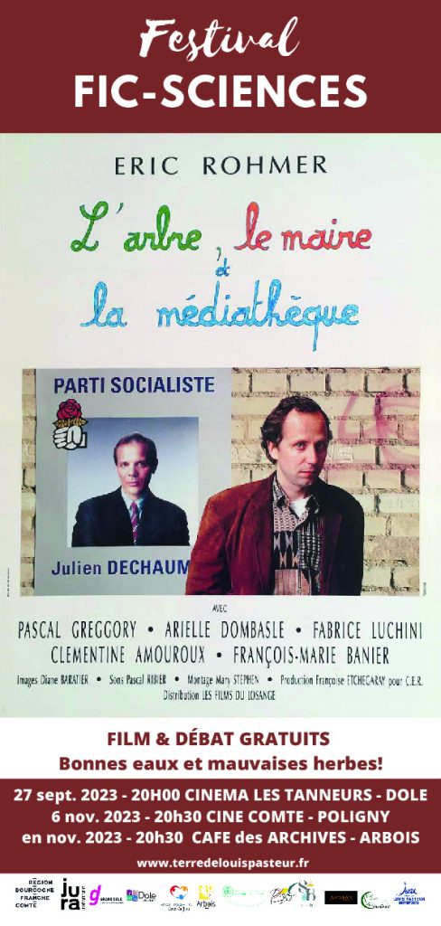 Projection du film d’Eric Rohmer « L’arbre, le Maire et la Médiathèque » (avec notamment Fabrice Luchini et Arielle Dombasle) suivie d’un débat de sciences citoyennes sur la qualité de l’eau.