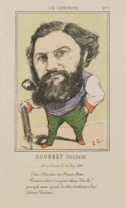 - photo de droite : E.C. (Monogramme de Charles Vernier) (1831-1887), Portrait charge de Courbet, La Commune n°3, 1871, Lithographie – 26 x 17 cm, Institut Gustave Courbet, Ornans, Crédit photo : © Pierre Guenat.