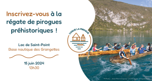 « Sites palafittiques préhistoriques autour des Alpes » est un réseau de 111 sites palafittiques situés à l’est de la France, en Suisse, en Allemagne, en Slovénie, en Autriche et en Italie, classés au patrimoine mondial par l’UNESCO. Les sites palafittiques sont des habitations préhistoriques répartis autour des lacs et des marais de l’Arc alpin, ils sont liés au développement des premières sociétés agricoles à partir de 5000 ans avant notre ère. Il en reste aujourd’hui les vestiges de constructions conservées sous l’eau et dans les marais. Les archéologues en retrouvent les pièces d’architecture des maisons en bois et de nombreux outils, objets du quotidien, restes alimentaires et même des vêtements. Deux d’entre eux sont situés en Bourgogne-Franche-Comté : Chalain et Clairvaux. Un groupe de coordination internationale (ICG) organise la recherche, la conservation et la valorisation de ce patrimoine. Dans ce cadre, la régate internationale de pirogues préhistoriques est née. Les 6 pays concernés par l’inscription UNESCO organisent chaque année depuis 2014 à tour de rôle une course. « Vogue la pirogue » en sera la 10e édition.
